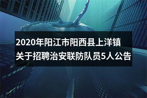【2020年阳江市阳西县上洋镇关于招聘治安联防队员5人公告】相关岗位: