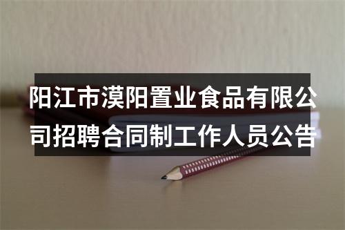 公开招聘工作在阳江市漠阳置业发展集团有限公司指导下,由阳江市漠阳置业食品有限公司具体组织实施。