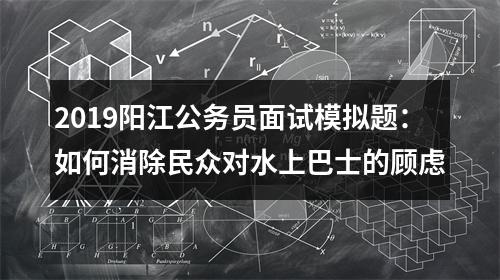 声明:专注 2019阳江公务员面试模拟题:如何消除民众对水上巴士的顾虑 相关岗位分析;专业指导面试技巧;保障就业成功概率。