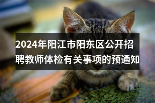 | 教师招聘 | 附件1.体检须知.doc 附件2.广东省教师资格申请人员体格检查标准(2013年修订).docx 阳江市阳东区教育局 阳江市阳东区人力资源和社会保障局 2024年8月7日 原标题:关于阳江市阳东区2024年公开招聘教师体检有关事项的预通知 文章来源:http://www.yangdong.gov.cn/xwzx/gggs/content/post_803272.html