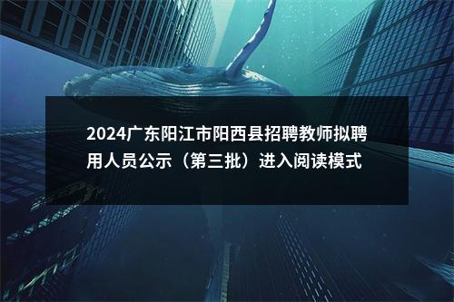 原标题:广东省阳西县2024年公开招聘教师拟聘用人员公示(第三批)