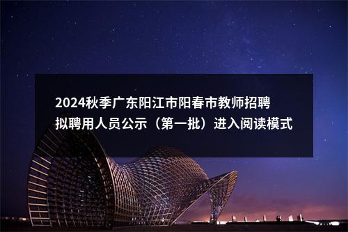 原标题:阳春市2024年秋季教师招聘拟聘用人员公示(第一批)