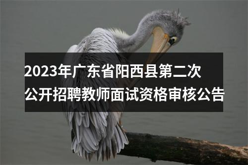 | 教师招聘 | 1:阳西县2023年第二次公开招聘教师入围面试资格审核人员名单.xls 阳西县教育局 阳西县人力资源和社会保障局 2023年6月8日 原标题:广东省阳西县2023年第二次公开招聘教师面试资格审核公告 文章来源:http://www.yangxi.gov.cn/gk/tzgg/content/post_710462.html