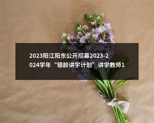 | 教师招聘 | 1.阳江市阳东区银龄讲学计划2023-2024学年招募讲学教师岗位需求表 2.广东省阳江市阳东区银龄讲学计划申请表 3.阳江市阳东区银龄讲学计划服务协议书 阳江市阳东区教育局 2023年8月10日 原标题:阳江市阳东区关于公开招募2023-2024学年“银龄讲学计划”讲学教师的公告 文章来源:http://www.yangdong.gov.cn/xwzx/gggs/content/post_725544.html
