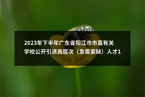 2023事业单位 | .阳江市市直有关学校2023年下半年公开引进高层次(急需紧缺)人才岗位表 3.阳江市市直有关学校2023年下半年公开引进高层次(急需紧缺)人才报名登记表 4.阳江市市直有关学校2023年下半年公开引进高层次(急需紧缺)人才诚信承诺书 5.阳江市市直有关学校2023年下半年公开引进高层次(急需紧缺)人才未取得教师资格报考人员承诺书 阳江市教育局 2024年1月4日 原标题:广东省阳江市市直有关学校2023年下半年公开引进高层次(急需紧缺)人才公告 文章来源:http://www.yangjiang.gov.cn/zwgk/ywdt/gggs/content/post_757228.html 【2023年下半年广东省阳江市市直有关学校公开引进高层次(急需紧缺)人才133人公告】相关岗位:
