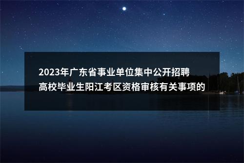 2023事业单位 | 1.2023年广东省事业单位集中公开招聘高校毕业生阳江考区进入资格审查人员名单.xlsx 2.广东省事业单位2023年招聘高校应届毕业生阳江市考区资格审核单位联系情况表.xls 阳江市人力资源和社会保障局 2023年6月12日 原标题:广东省事业单位2023年集中公开招聘高校毕业生阳江考区资格审核有关事项的公告 文章来源:http://www.yangchun.gov.cn/zxzx/gsgg/content/post_711116.html 【2023年广东省事业单位集中公开招聘高校毕业生阳江考区资格审核有关事项的公告】相关岗位: