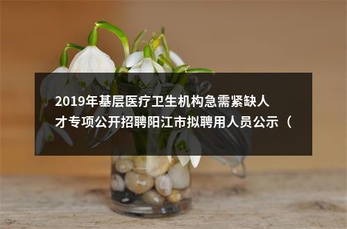 原标题:2019年基层医疗卫生机构急需紧缺人才专项公开招聘阳江市拟聘用人员公示(第一批)